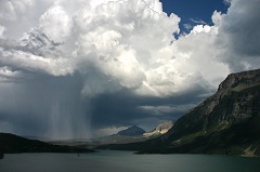 Mary Lake时湖面上居然又是雷雨阵阵,头顶上却一直是艳阳高照,那翻卷变幻的云层看上去十分壮观神奇。随后沿Going-to-the-Sun Rd.再度西进,直奔东门的Lake