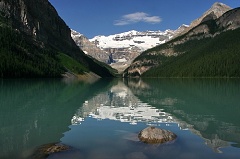 Louise。那翠绿的湖水象一块温婉圆润的美玉镶嵌在葱郁的山谷中。阳光透过云层在狭长的湖面上投映下斑驳的云影,那漂移的深深浅浅的绿又好像风中舞动的水绸,心中油然而升的是一种温润柔软的感觉。 离开Lookout后沿Big