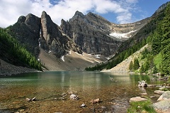 Niblock身旁显得清幽迷人,天空与松林渲染出蓝绿相间的清澈湖水,少一分Lake Louise的雍容华丽,多一分邻家女孩儿的清秀自然。绕过Lake Agnes便是通向Big