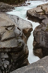 Canyon。这是我们此行经过的第一个Slot Canyon。源自Peyto Lake的Mistaya River从Bow Summit奔流而下,从海拔高处的Hanging