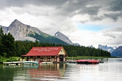 回到山下已经四点多了。天空已经渐渐的由晴转阴,我在码头上犹豫着要不要坐船,不知道两个小时后在那大山深处等待我的是阳光明媚还是凄风苦雨。最终心底的那份向往让我下定了决心,不论阴晴雨雾,我一定要亲眼见到那梦中的精灵岛。我们乘坐5:30pm的当日最后一班船驶向Maligne