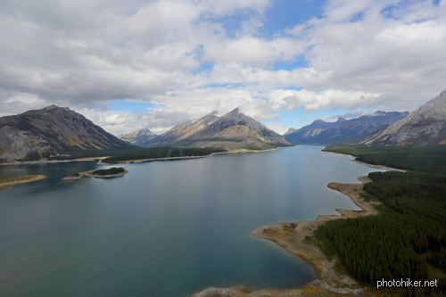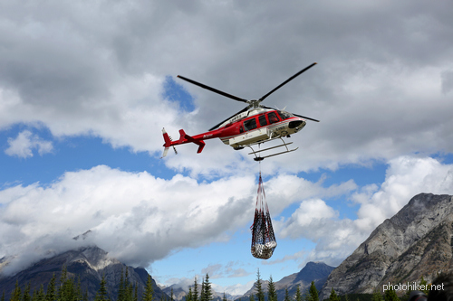 Mount Assiniboine是此次出游的第一站,也是最重要的一站。此山主峰山形峭立高耸,与瑞士著名的马特洪峰颇为相似。我们将在今天坐直升机进山,接下来在山脚下的Lake Magog露营三晚,最后用两天时间背包徒步出山。如今我们沿着昨天拍照走的那条山道迤逦前行,但是越往前走天色就越昏暗,太阳早不知躲到哪里去了,只有阴沉沉的天空在前方等着我们。