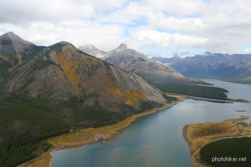 Guanwei和我在Alaska坐过各种小飞机,但坐直升机还是第一次。虽然只有短短8分钟的行程,但从飞机腾空而起的那一刻,我们就被眼前的峰回水转所吸引。先是Spary Lakes的高山平湖,随后是群山之中的峡谷幽深,还有Marvel Lake的惊鸿一瞥,虽然雨雾渐浓,我们还是不住的惊叹身边掠过的美景连连。不知不觉间脚下出现了几座小小的红顶木屋,Mount Assiniboine终于到了。