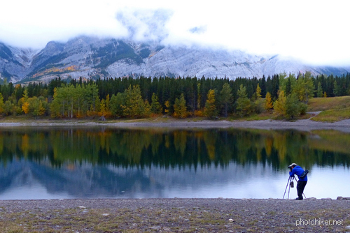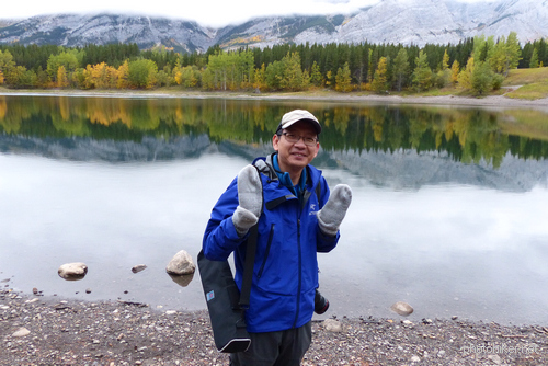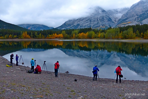 大家惊叹了一番眼前的美景,据说Paul乐得嘴都快咧到耳朵根了。随后在湖边一字散开,大家各自寻找位置开始拍照。美景当前,每个人都十分用心,试图在方寸之间记录下这湖光山色。