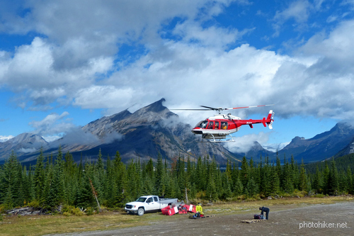 雨下一阵停一会儿,中间一度天色放亮,阳光微露。从小小的停机坪放眼望去,Mount Assiniboine的山峰半露在云层之间,显得巍峨而又神秘。随着时间一分一秒的过去,Eva开始坐卧不宁,越来越担心那哥儿俩能不能顺利到达。今天天气不好,路会不会很难走,会不会遇上熊啊?我虽然安慰她说不会有什么事,但我也很能理解此时她心中的那份牵挂与担忧。快3点钟的时候Guanwei和Lichao终于回来搬东西,据说在营地没见到Paul和70,不知这两人是不是走错路上山去了。眼见着雨又下了起来,正当大家收拾东西准备先去Lodge里避避雨时,David及时赶来说大牛和火娃已经到了,正在Lodge等我们呢。Eva终于如释重负,大家也都皆大欢喜。