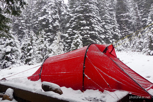 工作人员告诉我们说Hut里面如今还有4个空位,队伍之中Allison是第一次野外露营就赶上这样恶劣的天气,而一直宣称非器材派的David也只有三季帐,而且上午Hiking回来后他和YingNan都已是鞋袜全湿,恐怕也熬不过今晚这样严酷的环境了。最后商议决定Michael夫妇和David夫妇先行搬去小木屋。Michael其实非常想留下来雪地露营,还一度准备把位置让给Joyce。但是鉴于Paul的三季帐太过单薄,实在抵御不了如此的大雪和严寒,今晚要么住Hut,要么就得借宿Michael的大帐才行。为了避免与呼噜连天的Paul同帐共眠,Michael最终只得忍痛放弃了向往已久的Winter Camping。
