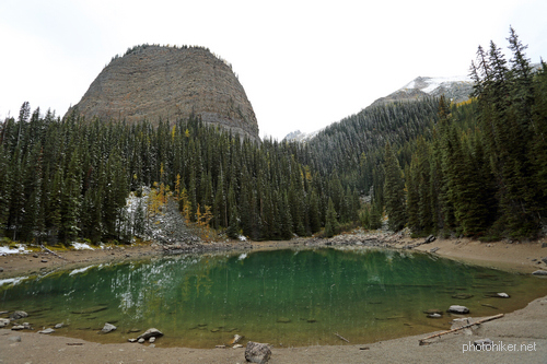 从Lake Louise到Lake Agnes一路上并没有出众的景色,小小的Mirror Lake算是个亮点。湖水清浅碧绿,依偎着高高矗立的Big Beehive,一派宁静恬淡的湖光山色。