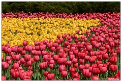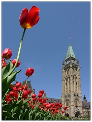 Parliament Hill的地位相当于我们的天安门广场,但是比起后者浓郁的政治气氛,这里更象个旅游景点。绿油油的草坪上游人如织,照相的,打球的,甚至还有睡觉的,连在路边巡视的警察都显得悠然自得。Peace Tower两侧的楼梯旁开满了两池红滟滟的郁金香,那纯正而浓艳的色彩在阳光下更是美得炫目。我们围着国会大厦转了好几圈后才走到旁边的Major Hill Park。小小的公园中人群摩肩接踵,那种欢乐热闹的场面与那一片片娇艳绽放的郁金香倒是相得益彰。我们在花丛中留连忘返,背景中无论是艺术馆的现代还是圣母教堂的古典,那火一般艳丽的色彩美得那样热烈张扬。经历了漫长冬日的寒冷萧瑟,如今那娇媚的粉,悦目的黄,还有那明艳的红,处处是浓墨重彩渲染出的动人春色。