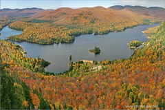| 秋之绚丽 (10.13 - 10.15.2007) Mont. Tremblant在华人旅行社中被称为翠湖山,有“东方班芙”的美称,是加拿大东部著名的滑雪圣地。论山高水秀,这里与落基山相差不是一点半点,而Banff小镇留给我的印象好象只有游人如织,落基山的精华隐藏在群山深处,雪峰之巅,远不是这些人工修建的小镇所能展现的。因此Mont. Tremblant在我的印象中仅仅是个度假村而已,对于出门就习惯风餐露宿的我们来说,这里只适合陪父母来游玩。转眼之间又到了金秋十月,猛然间想起Mont. Tremblant也是著名的赏枫圣地呀,刚巧又在网上找到一个价格不错的Package,于是我们毫不犹豫的订下了今年的赏枫之旅。