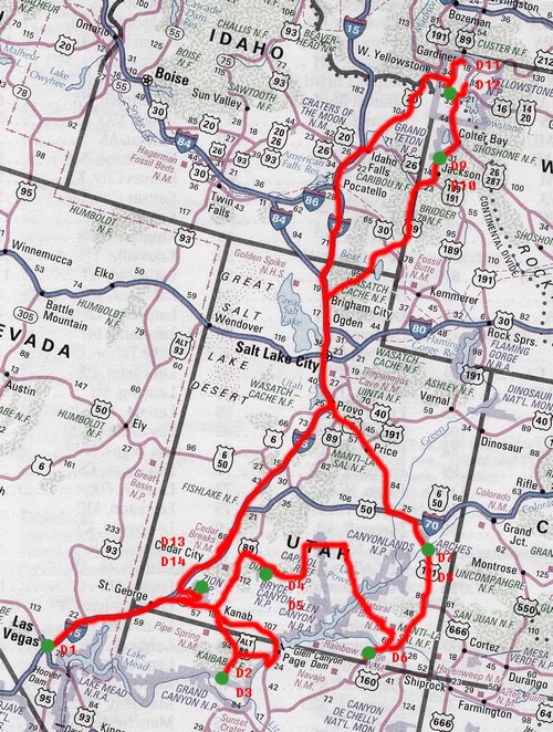 不出一周, 各种资料广告便开始象雪片一样从美国飞来。 随着资料的不断增多, 我们的计划也开始修修改改。首先到了Los Angels便想去Las Vegas,去了Vegas大峡谷就不能放弃,而再往北的Utah更是集西部的精华于一州。结果时间由春天改在了夏天,假期也由一周变成了两周,目的地更是从加州而改成了西南部数州。经过几个月的准备,