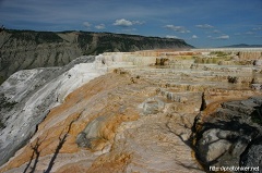 Hot Spring是黄石的著名景点之一。这里有大片的梯田状的Terraces,是温泉水中的矿物质沉积而成的。只不过现在许多地方,包括那著名的Minerva