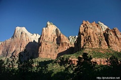 Landing,眼前的无限风光会使一路上的疲劳顿消。首先映入眼帘的是那高耸的Great White Throne,在夕阳的照耀下巍峨矗立,的确有君临天下的王者风范。两边的Zion