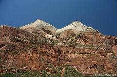 Patriarchs同样的群峰高耸,令人叹为观止。再往前的Weeping Rock清澈别致,只不过水量细少。随后在Big Bend仰望一番Angle's Landing的险峻,再往前便是终点站Temple