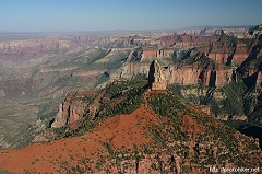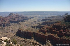 15前往大峡谷的北沿,要跨越Nevada,Arizona和Utah三州。沿途风光变化迥异,出了Las Vegas就是荒芜的沙漠,沙石遍地,点缀着零零星星的仙人掌般的植物。一进入Arizona,仿佛骤然间便是群山环抱,山路曲折。两边峭壁高耸,乱石林立,显得粗犷豪放。进入Utah之后,从St.