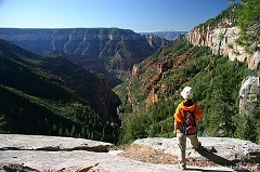 Springs,随后在溪水边野餐休整,盘桓了近两个小时。其间遇到一位来此巡视的Park Ranger。攀谈之际他给了我们许多有用的建议,让我们在以后的Hiking中也收益非浅。返回之前我们按他所说将T恤和帽子都弄湿,果然在炎炎烈日下感觉清凉了许多。回程是艰辛的,眼前只有无穷无尽的上坡,和那数千尺之外遥遥无期的山顶。随着海拔的升高,感觉身边的景色与下山时看到的居然大不相同。大峡谷的美是无处无时不在,行走在其中你永远不会感到枯燥无聊,你的眼前永远有看不尽的风景。