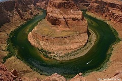 Bend可以极尽你对奇迹的想像。Colorado River象一条莹润的碧绿宫绦,在千尺悬崖之下盘成一个巨大的U型。绝壁高耸,碧水悠悠,雄伟,惊险,壮丽。我简直不知该如何形容那样的美。GuanGuan在悬崖边跑来跑去,最后无奈的告诉我28mm的镜头实在不够广,无法将美景尽收。的确在大自然面前人类是渺小的,即使我们拥有了24mm,18mm的超广角,也还会有许多美景无法完美再现。旅行,要用眼,更要用心。