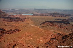 Point。此时已近中午,火热的骄阳驱散了早晨迷漫的雾气。站在公园尽头的观景台上,Colorado River 在脚下的河谷中蜿蜒蛇行,千沟万壑的峡谷,高耸矗立的山丘如同一幅线条粗犷的写意画般展现在眼前。相比大峡谷的深邃秀丽,Canyonland辽阔却略显单调,而这里视野开阔,不同地质年代的岩层象一摞摞书卷般层层叠叠的累积着,所有的山体岩壁如同被切开蛋糕的横断面,层次清晰,条理齐整。没有青山,没有绿树,只有那红褐色荒漠般的沟谷纵横。眼前的一切完全是一部生动的地质教材。已经记不清是第几次见到这神秘的Colorado