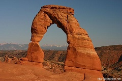 Arch,她的傲然独立,她那优雅的姿态,完美的造型,艳丽的色彩,再加上远处积雪皑皑的La Sal Mountain为背景,这是一幅美得令人窒息的画面,我无法再去形容和描述那自然中的优美与和谐。如果你有机会来到Arches,一定一定不要错过Delicate