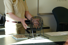 清晨起来吃了早饭,收拾齐整,八点刚过我们就来到了Kanab Visitor Center。此时门口已经停了好几辆车,看来来抽签的人少不了。所有来抽签的人都被请进一间小会议室,先是填表,随后拿号,9点钟报名截止。然后还要依次核对号码和人员,最后才是摇奖。GuanGuan把报名表交上去后就一脸无奈的回到座位上,告诉我说我们居然被排在13号。哈哈,这要是能被抽中才怪呢。眼看着屋子里的人越来越多,最后清点人数后确认今天有42个Group,共80多人参加抽签,希望真是越来越渺茫了。工作人员摇奖的时候,看着铁笼子里那一堆上下翻滚的小球我还真有点紧张呢,每一颗被拿出来小球,我是多么希望上面刻着那并不吉祥的数字。很快10个名额已满,我们和大多数人一样,满怀憧憬而来,带着失落离去。